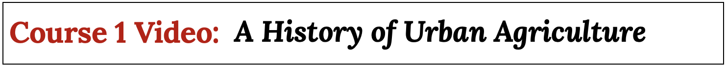 Course 1 Video: A History of Urban AgricultureWhile interest in urban agriculture feels like it's currently at an all-time high, urban agriculture has been practiced in the United States for generations. This video explores the history of urban agriculture in the United States; the following video examines the role the USDA is currently playing to support and expand urban agriculture and innovative production.As you watch these videos, think about how urban agriculture's history informs how it is practiced today. How does this history help contextualize your perceptions of urban agriculture and how you, as a USDA employee, can support urban growers?