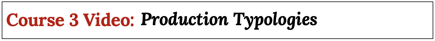 Reinforce what you have learned about production typologies with a brief assessment including true/false and multiple choice questions.