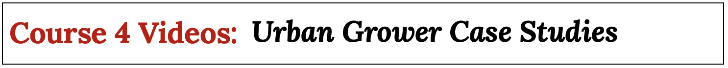 A second video discusses some additional considerations faced by urban growers, including concerns like high input costs and land availability. -