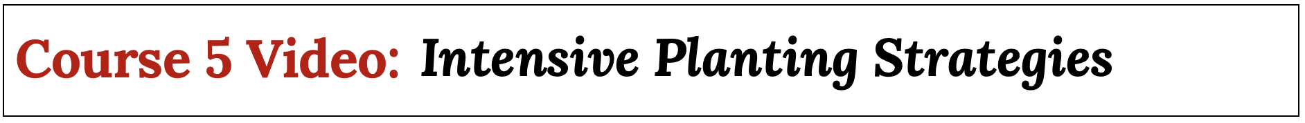 Course 5 Video: Intensive Planting StrategiesBy square foot, land is generally more expensive in urban areas compared to rural areas, and parcel size is often limited by development. Urban growers can respond to these constraints by practicing intensive growing strategies that generate high yields per square foot. This video explores some of these innovative, intensive planting strategies.You must watch all videos to receive credit for this course. You can download the script for this video for your reference.