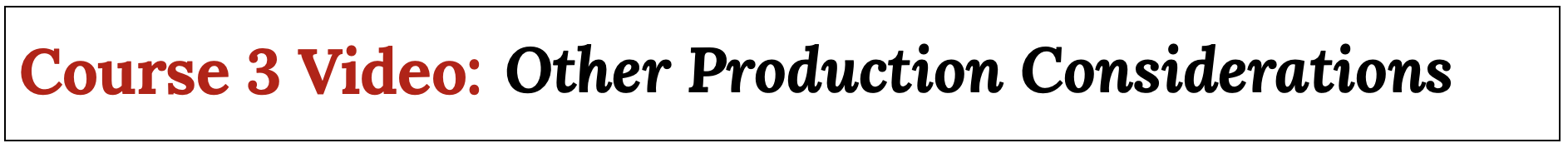Course 3: Production Typologies and Other Considerations