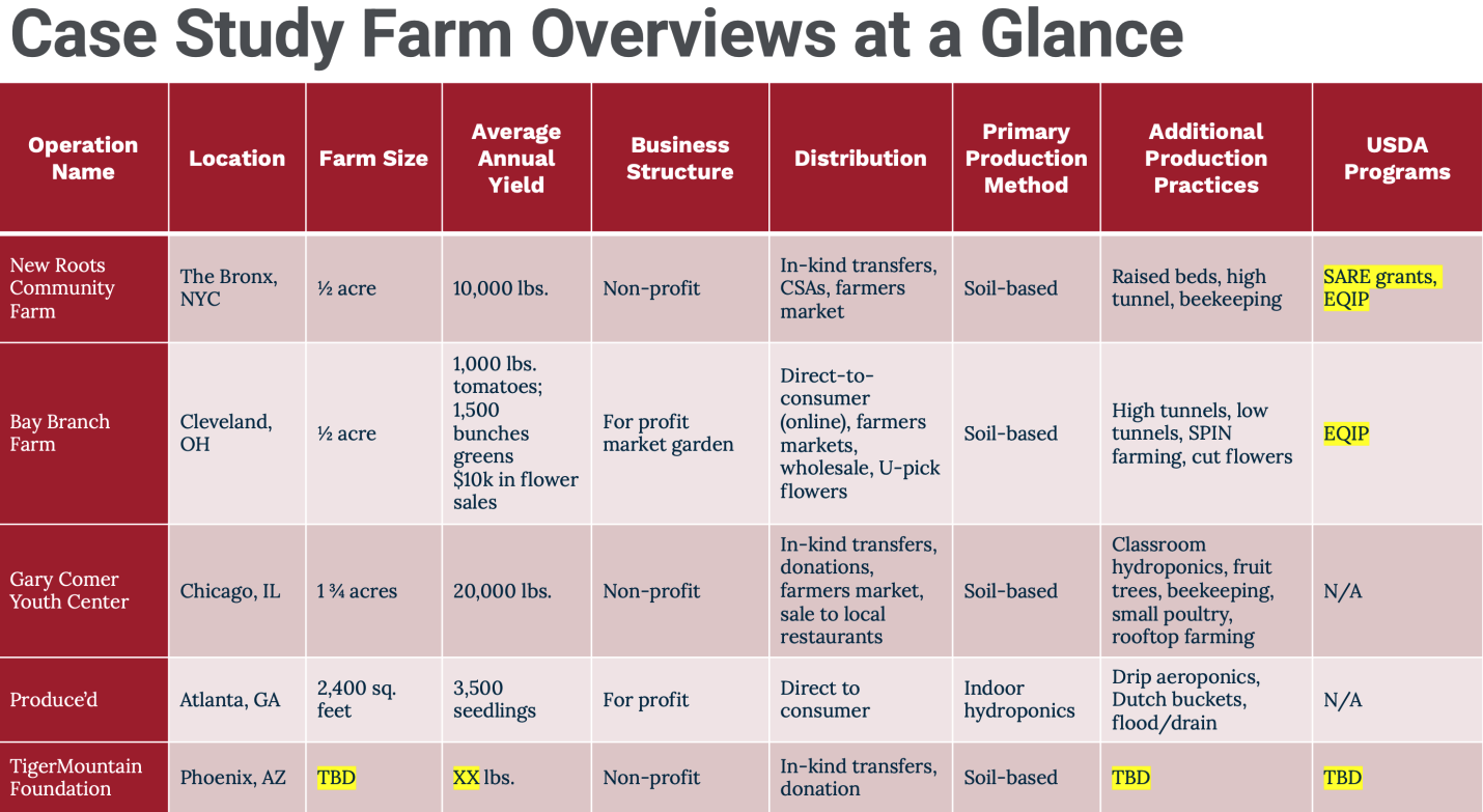 Watch each video for an overview of production practices, marketing and business structures, and thoughts on scaling urban agriculture from each of our five urban grower educator partners.