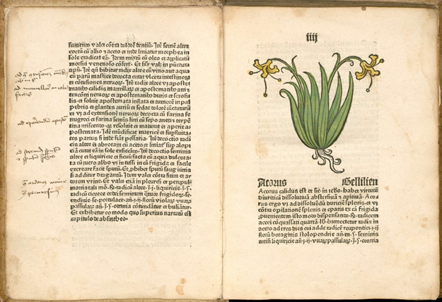 Advances in printmaking and the use of wood block print in 15th century Northern Europe helped with some of the copying troubles, but since illustrations were still copied from previous illustrations and then transcribed by a third person onto a wood block, there was still no advancement in illustration technique and detail continued to be lost in the copying process. Small details of the plants themselves were still not shown because of difficulties in the process- an artist would copy an illustration onto paper and hand it over to an engraver who would carve away the negative spaces of the print (those that won't apply ink to paper) from the block's surface for printing. The major herbal of this time was the German Herbarius, published in 1485.